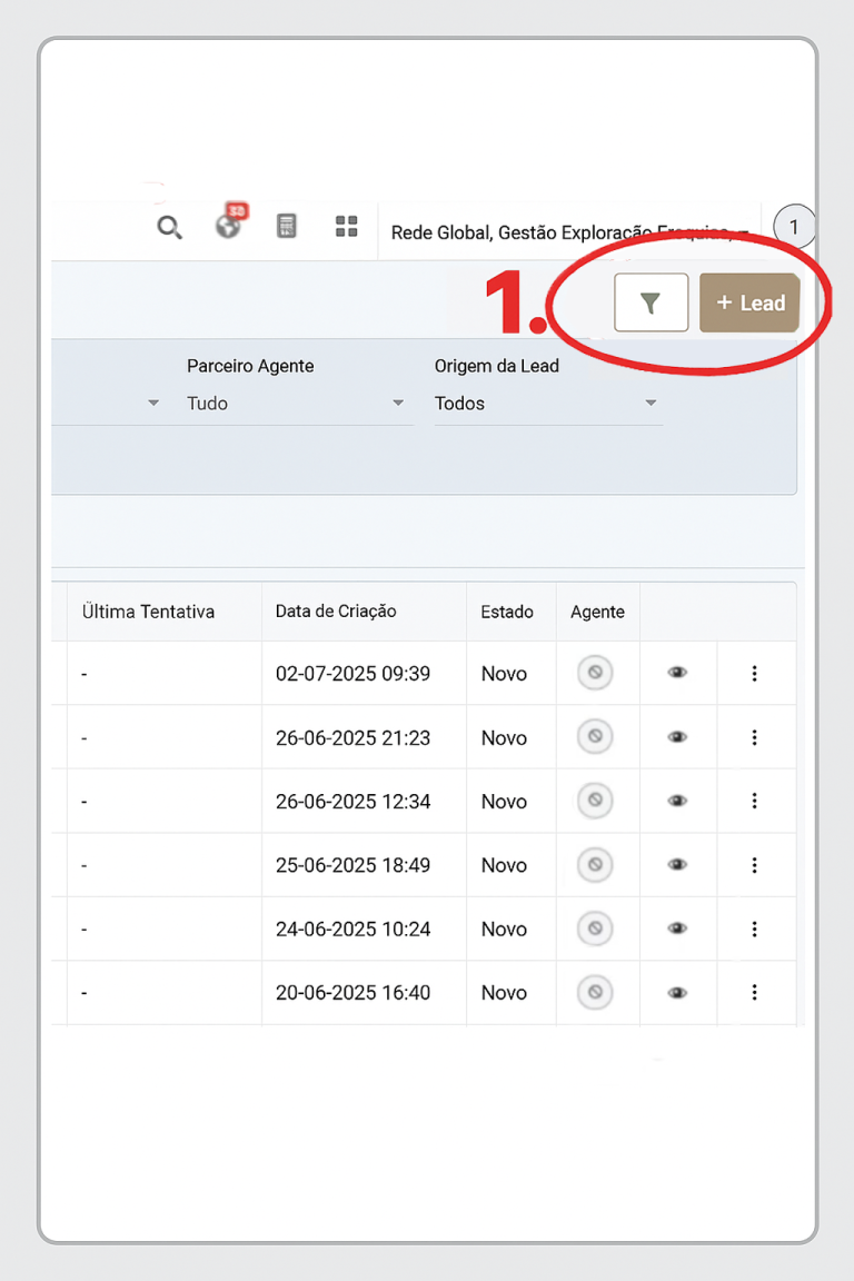 Comece por entrar na Finance21 e clicar em “+Lead” para criar uma nova lead.